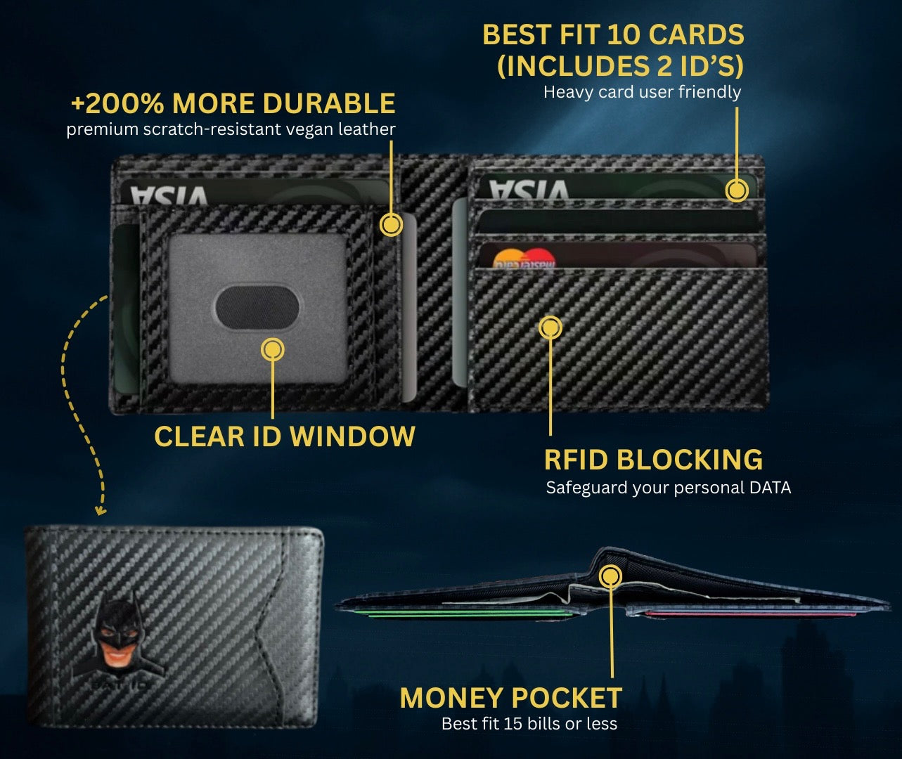 Discover unparalleled style and practicality with our wallet, featuring unique superhero design elements, advanced security, and ample organization, making it the ultimate choice for everyday heroes.
